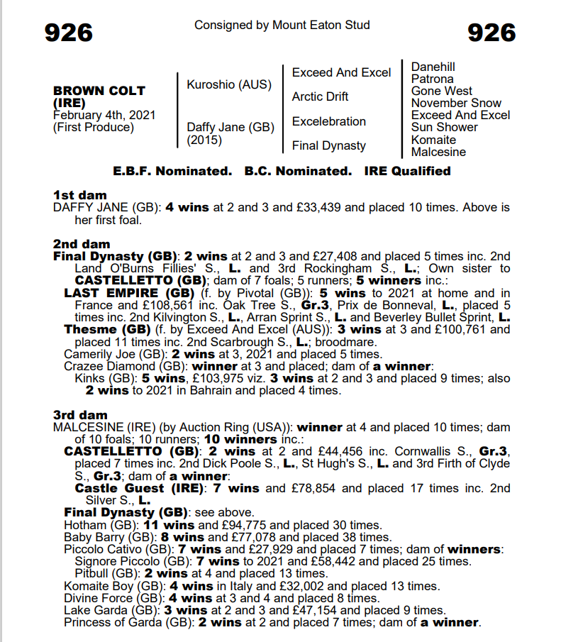 The first prodouce of the excelebration mare, Daffy Jane. Daffy Jane was a four-time winner trained by Nigel. Her wins came from 5f to 6f at four different tracks and she reached a peak OR 82.
