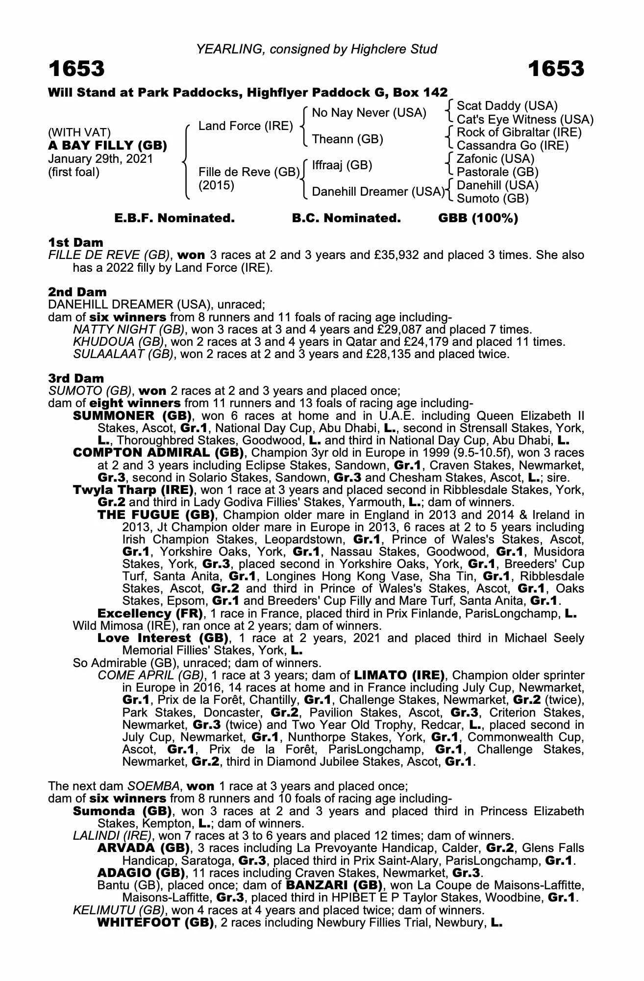 This is the first foal out of the Iffraaj mare, Fille De Reve. She was a winner at two and three and reached a career high Official Rating of 94, after Class 2 victory at Ascot.
