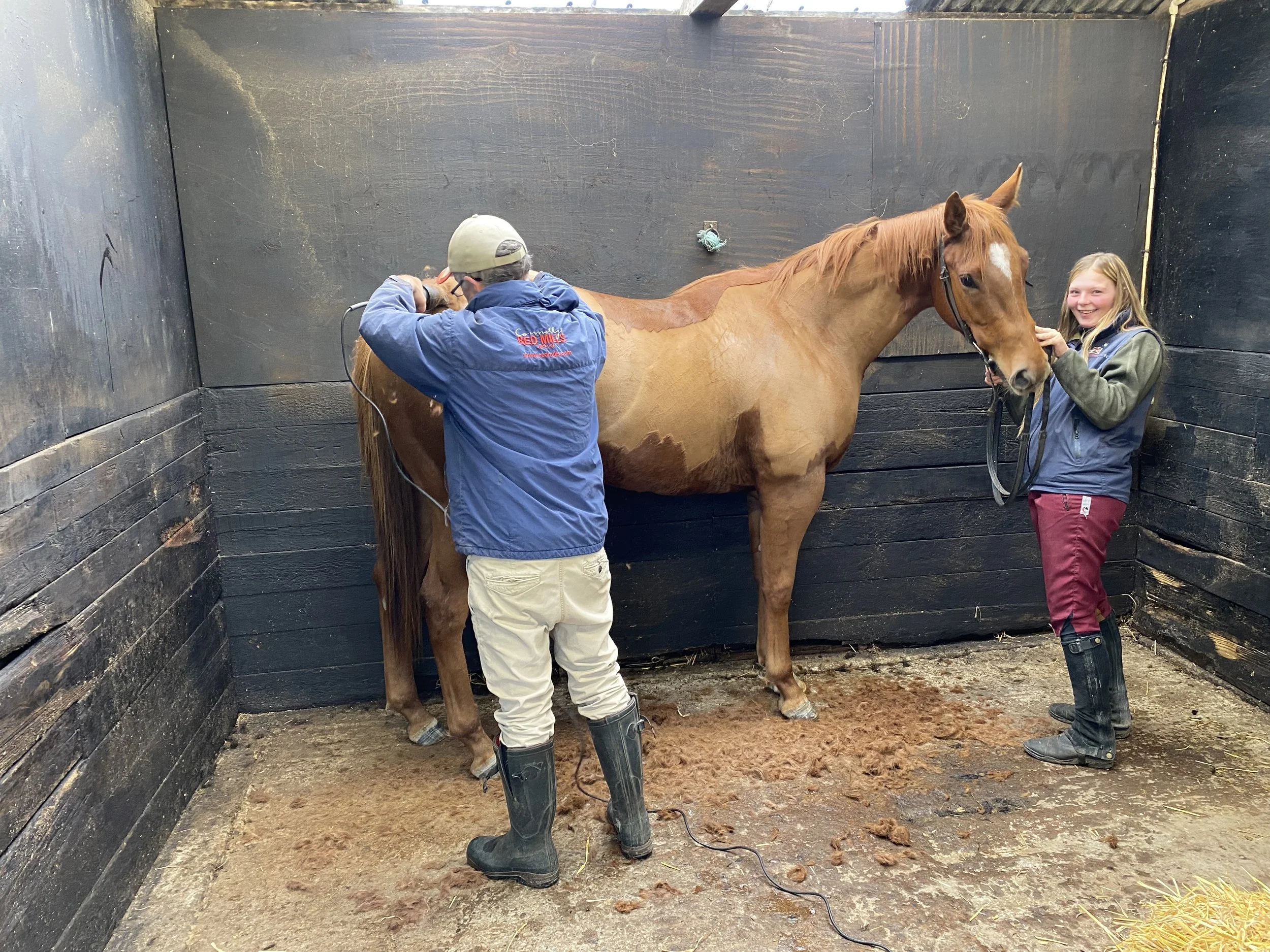 This is our newest addition, ‘Porto Ercole’, being ridden by Faye. She was bought last week at the Goffs HIT Sale. Porto Ercole ran twice in Ireland for Ger Lyons. She is by first-season-sire Caravaggio and out of the Gr. 1 - placed mare, Euphrasia.
