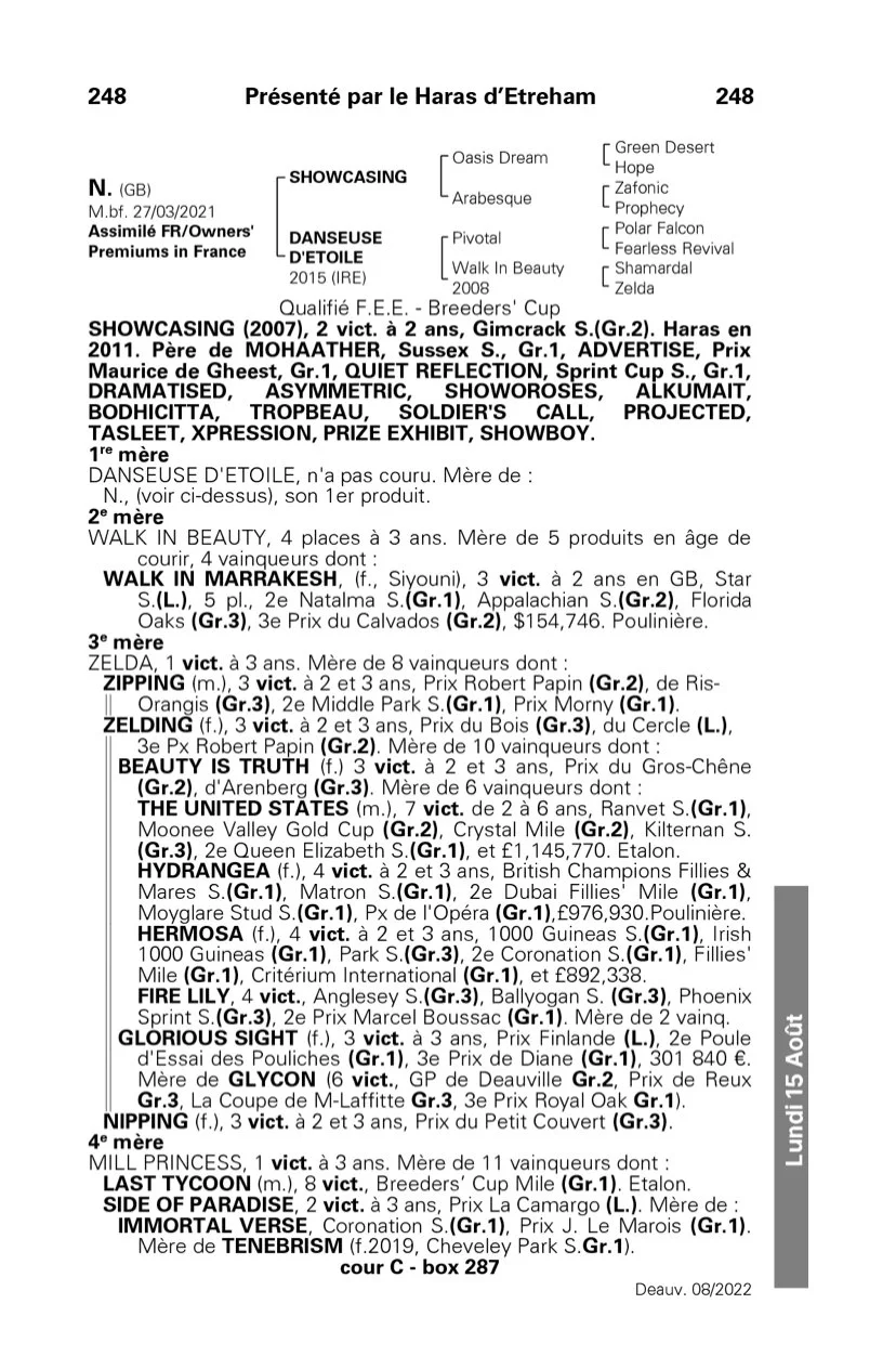 He is the first foal out of the unraced Pivotal mare, Danseuse D’Etoile. Pivotal was crowned Champion European Broodmare Sire between 2017 and 2019.